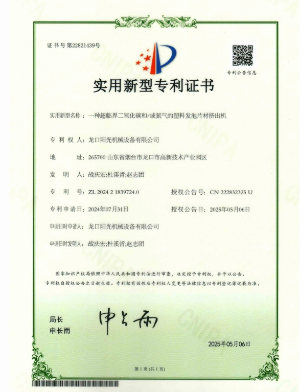 我司获得专利:一种超临界二氧化碳和/或氮气的塑料发泡片材挤出机