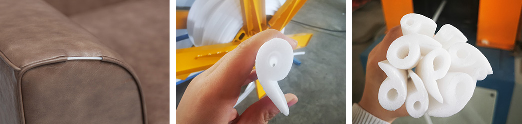 该生产线可以生产高弹力EVA 发泡材料,制品可用于高品质家具沙发、床垫、箱包、门窗等包边条/造型条/滚边条/密封条,EVA 材料具有高弹性,回弹力佳,是一些高品质产品常用的发泡制品,随着生活水平的提高势必会逐渐取代常规的海绵及PE制品,更好地提高人民的生活质量和水平.